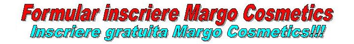 Inscrierea in clubul Margo Cosmetics este 100% gratuita!- Dupa ce completati formularul de inscriere o sa primiti acasa in maxim 5 zile un catalog Margo Cosmetics tiparit,catalog pe care dv il veti putea studia si alege cadoul potrivit sau de ce nu produsele cosmetice necesare pentru uz personal.